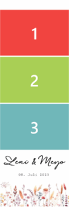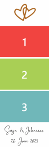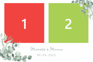 Ihr könnt Euren Gästen ein oder mehrere Designs zur Auswahl und zum Ausdruck anbieten. Wir passen es auch gerne z.B. an Eure Hochzeitseinladung an.
