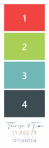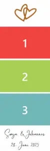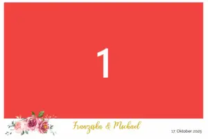 Ihr könnt Euren Gästen ein oder mehrere Designs zur Auswahl und zum Ausdruck anbieten. Wir passen es auch gerne z.B. an Eure Hochzeitseinladung an.