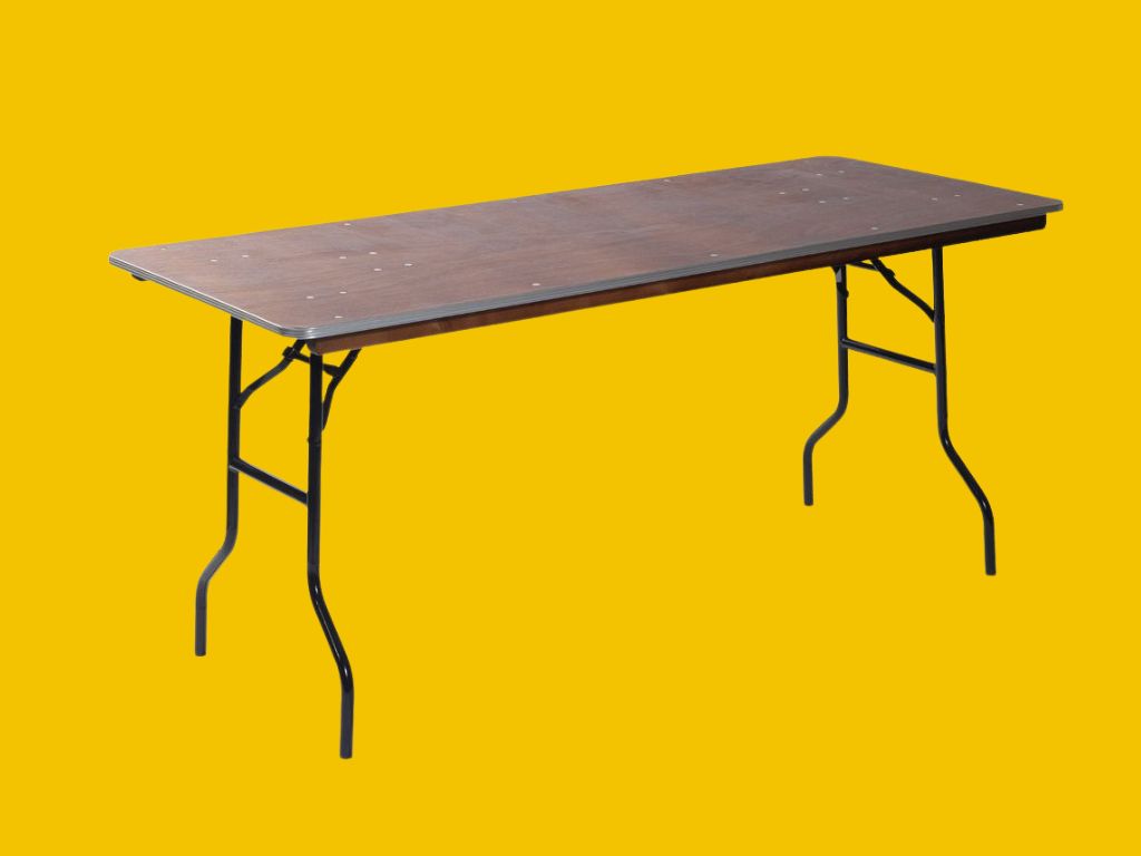 Der Banketttisch hat klappbare Tischbeine und ist dadurch kompakt zu transportieren. Er ist 220 cm lang und 76 cm breit. Die Tischplatte ist aus Holz gefertigt und mit einer Aluschiene umrandet. Daran finden 8-10 Personen Platz. Er kann aber auch einfach als Geschenke- oder Buffettisch verwendet werden. Gerne bieten wir auch die passenden Tischdecken mit an.