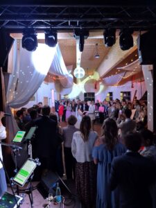 Eine Besonderheit hier war, dass die Band sowohl in die Scheune/den Saal, als auch in den überdachten Außenbereich spielen konnten, was bei den sommerlichen Temperaturen ideal war 🙂